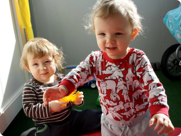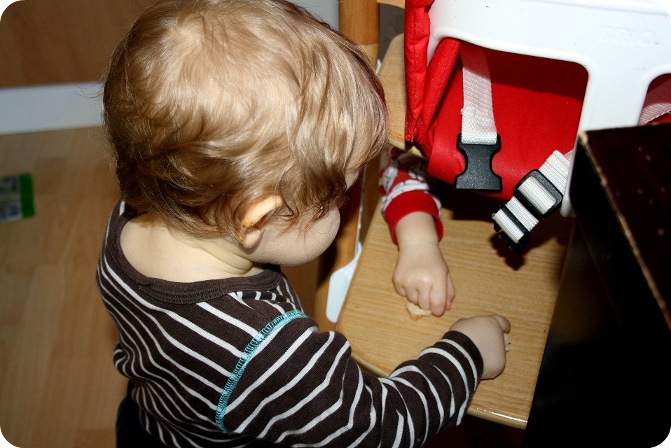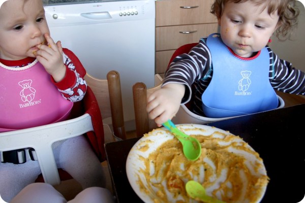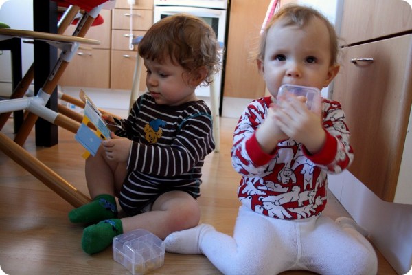 Isaac har fattat det här med att äta med sked. Milja tuggar bara på skeden, men äter gärna makaroner och ärtor med händerna. Jag måste erkänna att det här är en av de saker jag tycker är riktigt jobbig med småbarn; när de ska lära sig äta själva och det blir superklafsigt och det är mat i hår och på lår. Just nu flyger det i alla fall inte runt mat i rummet, det är jag glad för. Jag tror att de kan mer än jag låter dem göra, jag vet nog det. Det tar emot att inte mat, även om det där matandet straffar sig i längden! Jag jobbar vidare med det och ungarna jobbar med att lära sig. 🙂