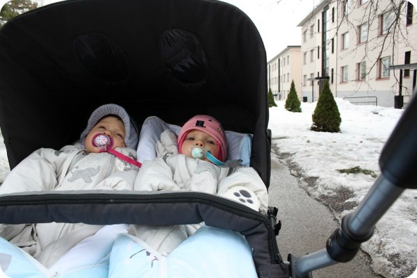 Vi har hunnit med både nya leksaker (makaroner i tomma napplådor), balkonglek och promenad. Solen var framme rätt länge och fyllde rummet med liv och ljus. Mina tulpaner älskar ljuset och spretar åt alla håll. Jag vill byta till tunnare kläder på barnen, men eftersom de bara sitter stilla i vagnen än, är det lite för kallt för sommarjackor. Fyra plusgrader är ju trots allt inte så supervarmt, fast man har siktet inställt på värme. Idag är det vårdagjämning och igår såg jag en man byta till sommardäck på sin bil. Det är bra med vårtecken!