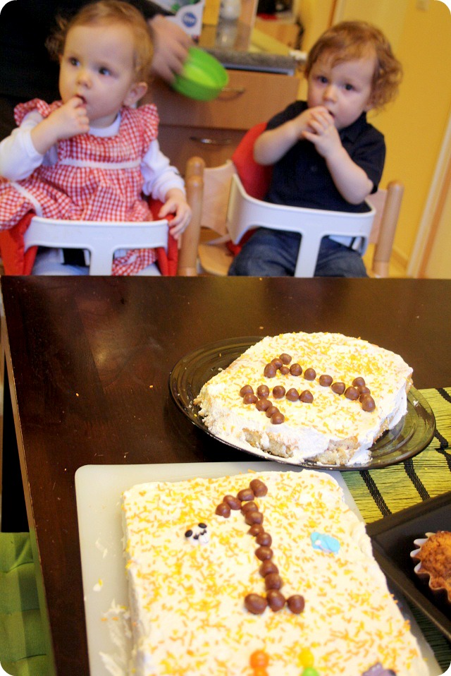 Så det är ganska skönt att den är förbi. Ungarna har fått kalasa på en bit av den riktiga tårtan. Och vad de åt! Med varsamhet. Och stor koncentration. Majsringar, mjölk. Sång och presenter. Tack snälla gudmor och gudfar för den coola boken och det andra! Det uppskattades!