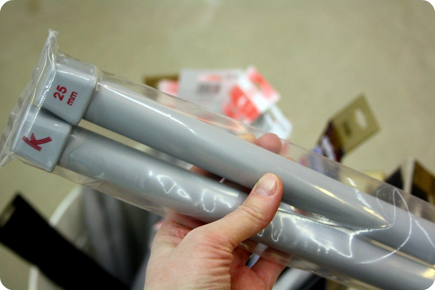 Eller så tar man ett par megastickor och lägger upp tre maskor med dem! Lite coolt att det finns såhär stora. De är inte tunga heller, för de är ihåliga och av plast.