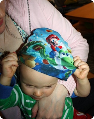– Nä nu får du sluta prata i nattmössan morsan och visa den coola Super Mario Galaxy 2-mössan, som vi hittade på KappAhl. 😀