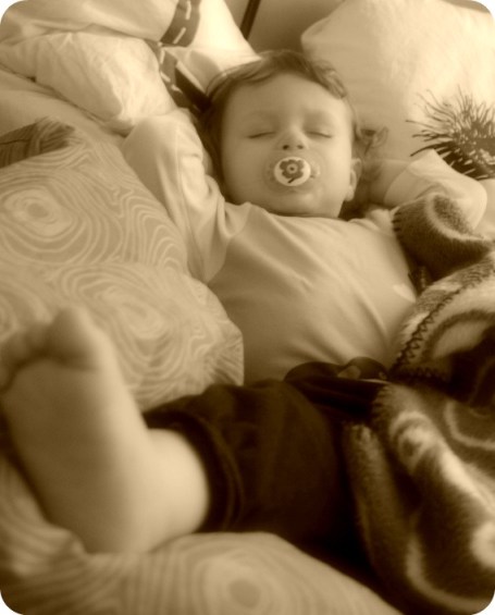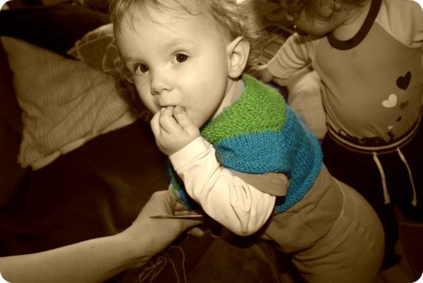 … som är otroligt bra på att hitta små knappar, små sandkorn, lyckas ramla medan jag borstar tänderna (när jag rusar tillbaka sitter han bara där och gråter och jag har munnen full av lödder, fattar ingenting, men tröstar och borstar vidare. :))
