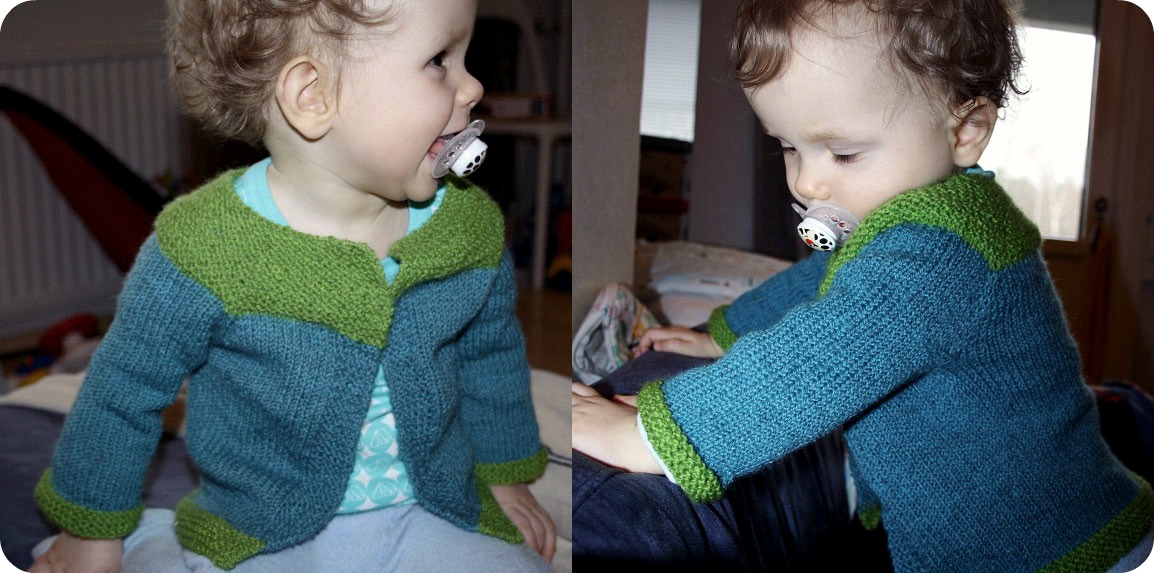 Jag har stickat klart en liten kofta. Fast knapparna fattas. Det är ett ganska skönt problem, för då ”måste” jag gå till Lankabaari. ^_^ Det gick på under en vecka, wohoo! Fast den är ju rätt liten och en och sån där ”trä utanpå-kofta”.