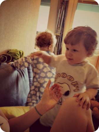 Jag hinner inte med. Inte med så mycket alls. Det är bara klättra, klättra och ramla falla, torka mat, laga mat och ni-vet-ju-redan-allt-det-där, medan regnet öser ner utanför och Mika är sjuk. Just nu har jag barrikaderat soffan med tv-bordet, elementen med babysitters (för att inte bankadet ska höras i hela huset) och det ligger leksaker överallt. Jag vet att det ska vara såhär ”i nåt år framöver” nu, men det känns bara väldigt, väldigt länge just nu. Man ska ju leva under tiden också.
