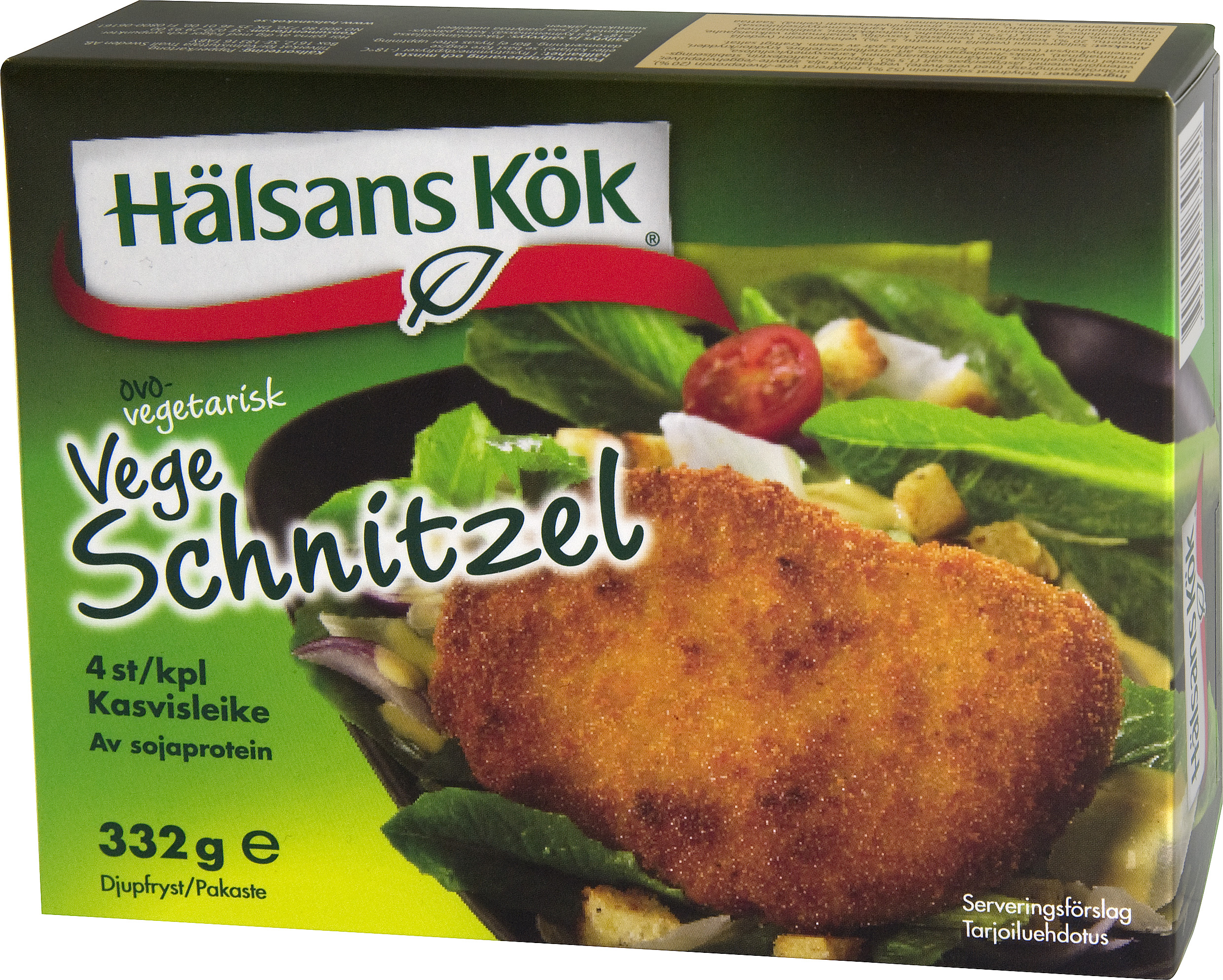 Hela vår familj, 0-39 år, gillar Hälsans köks veggoschnitzel. Ett utmärkt alternativ till den som vill byta ut den ständiga köttfärsen eller laxen till ungarna – och sig själv. De innehåller dock en hel del salt, enligt deras egna förteckningar, men själv tycker jag inte att de är supersalta och jag brukar märka sånt. Jag saltar väldigt lite i min egen mat.
