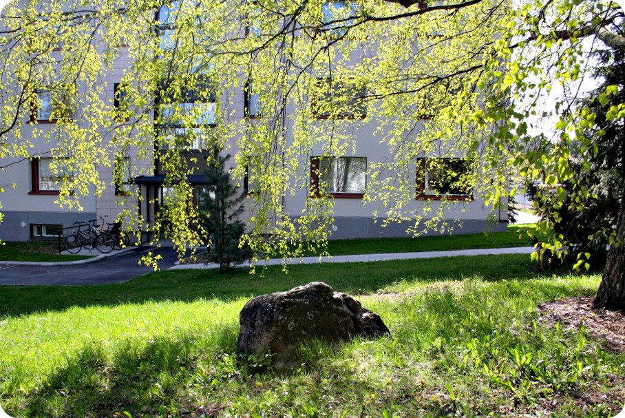Det är som det brukar här i förorten. Ganska mysigt och grönt och nära till naturen. Ungarna trivs ute och vill aldrig in.