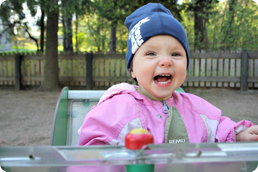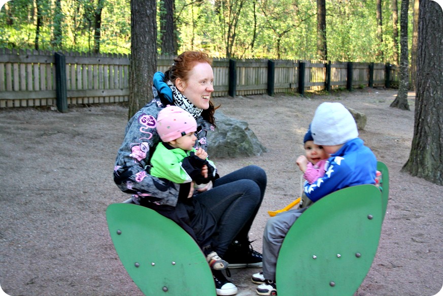 Hur många får plats i en båt? Nästan hela familjen! Och så Per-i-skopet såklart. 😛 När twinsen tröttnade på gungleken, satt William och jag kvar och sjöng långa ramsor om båten Dacapo och bitar ur ”Att angöra en brygga”, men jag kan ju bara sopran 2-stämman.