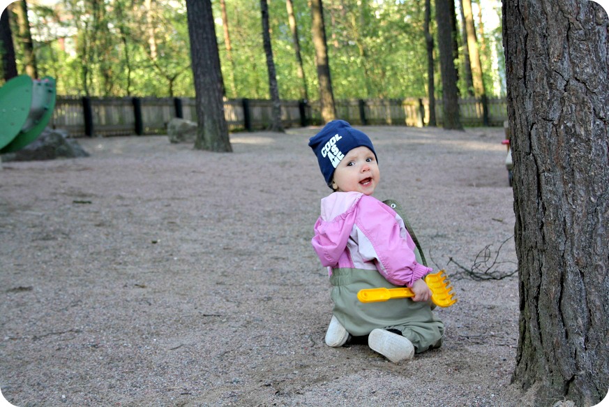– Nej mamma, du får inte trampa på daggmaskarna! sa W plötsligt till mig.