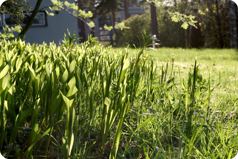 Vi tog en promenad förbi mängder av liljekonvaljer, förbi häggar och brudspirea som redan börjat slå ut.