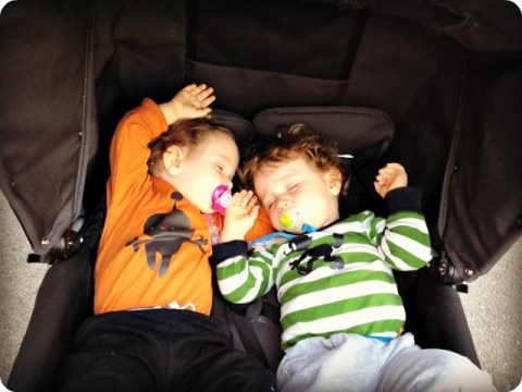 Två små slagna hjältar orkade inte riktigt ända hem. Man tänker alltid att de där Ikea-resorna ska gå så snabbt, men de tar sin tid. Ungarna har fått ett par nya lakan, Ikea har fått in nya mönster, bland annat Vandring-lakanet och Vandring Igelkott.