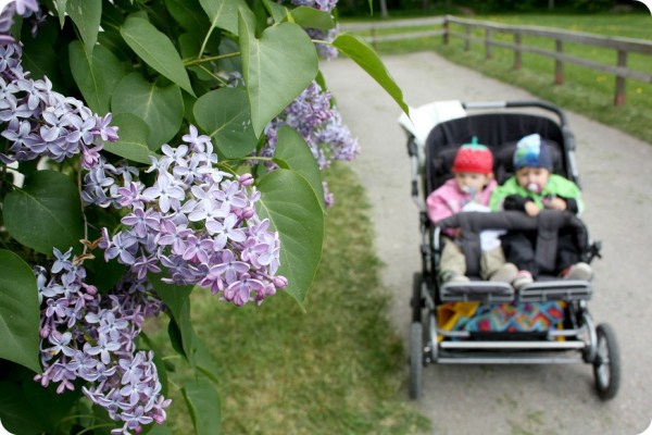 Vi tog en liten promenad, fast Isaac hade feber på morgonen. Det är så knasigt väder. 12 grader och svalt i skuggan, men varmt i solen. Det blev lite extra kläder i alla fall. Ungarna brukar inte sova två gånger per dag, men nu hörde jag något som rasslade i vagnen och det var Milja som snarkade. Stackars tjej, man skulle vilja kunna hjälpa till att hosta bort det där slemmet. 😦