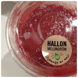 Vi äter frulle på Centralen och jag bara älskar de här nya plastmuggarna som är helt gjorda av majs och nedbrytbara i komposten. Fast de känns som plast. Hurra för miljöhänsyn och rättvisemärkt kaffe (fast jag inte dricker nästan nåt nu).