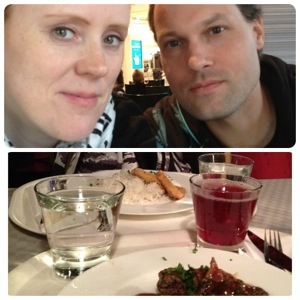 Lunch får man för 80 kronor på Golden Hits. Åh, det är precis som förr, man går i köket och hämtar mat. Här åt vi ofta med jobbet. Det ligger på Östermalm, så det händer att man springer på riktiga storfräsare och känner sig för dåligt klädd. Jag äter en väldigt seg skomakarstek och dricker lingondricka. Såklart. Och precis som vanligt blir Mika klar långt före mig och jag häller ut dryck på brickan.