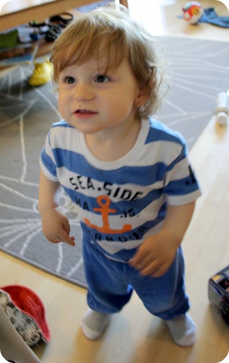 Plötsligt kan båda äta själva med sked! De äter makaroner, ärtor och fiskpinnar och allt går ut. Det mesta kommer faktiskt även i munnen. Så skoj! Men oj va svårt att låta bli att hjälpa till, när det far på sidan. Däremot tycker jag det är ganska tidigt att äta själv, så jag applåderar mina små och tänker att det kanske beror på att jag inte matat dem lika mycket som jag matade William. De har fått äta med händerna ganska länge. Och Isaac går. Han går och går, nu när han kom på hur man gjorde. Han traskar så sött och säger ”gaa-gaa” och så ”gar” han runt till alla. Milja hoppar fortfarande fram på knäna, men kan ju egentligen gå. Men det är ju snabbare att springa på knäna ju!