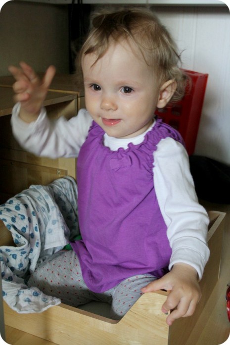 Milja har kommit tillbaka i sin vinka-åt-allt-period, som hon hade när hon var pytteliten. Hon ska ”baja” åt program som är slut, bilar och pappa och fammo och mamma. Det är ganska charmigt, för hon bara öppnar och stänger handen, så det ser så prinsessigt ut. Annars har vi haft en gråtig dag, Milja har haft feber av och an (inatt kändes det som om hon var vaken hela tiden, stackarn) men det verkar ge med sig. Är det samma förkylning som ännu inte har släppt? Nåja, vi väntar och ser.