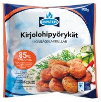 Chipsters fiskbullar. De kostar lite över två eurosar och finns på Citymarket. Ungarna älskar dem! De finns också i orientalisk smak och med sej.