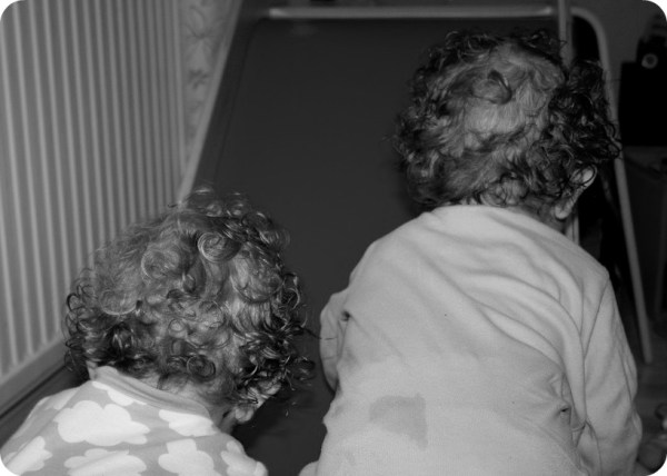 Twinsen har lugnat ner sig lite i badet också. De plaskar inte hysteriskt som fäktande turbiner, så fort de ser vatten längre. De kan till och med ösa. Fast träffsäkerheten, det övar vi vidare på. Nu sover två lurviga huvuden tryggt i sängen. Aaah. Känner ni? Fredagsfriden.