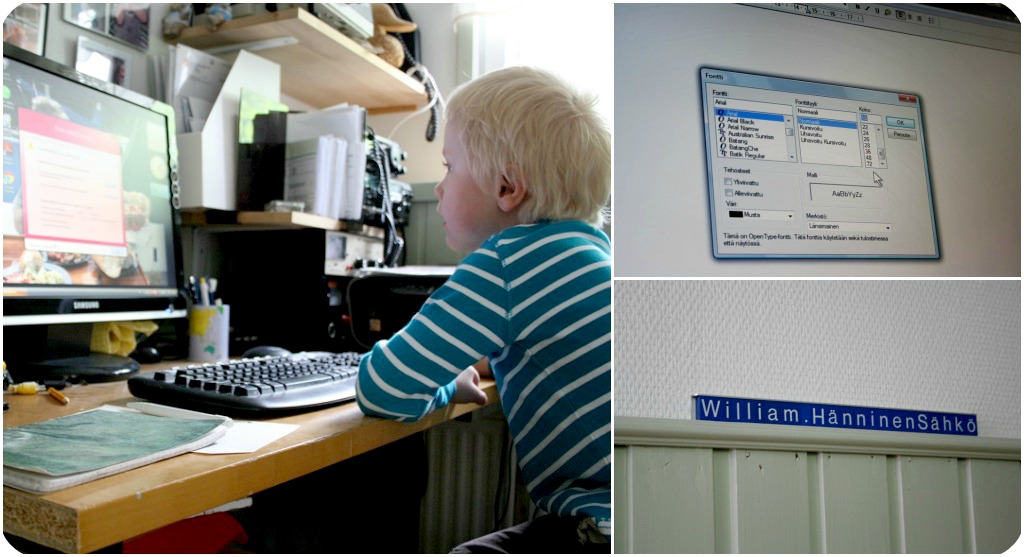 Min stora son är så bra på bokstäver. Det här är hans kontor, säger han. Vi har fått en konkurrent vid datorn. Numera vill han hela tiden öppna Wordpad och byta font och zooma in, byta storlek och färger och skriva långa dokument. Men vilket härligt problem, säger jag bara! Jag har en känsla av att han kommer att bli nåt stort, den här grabben.