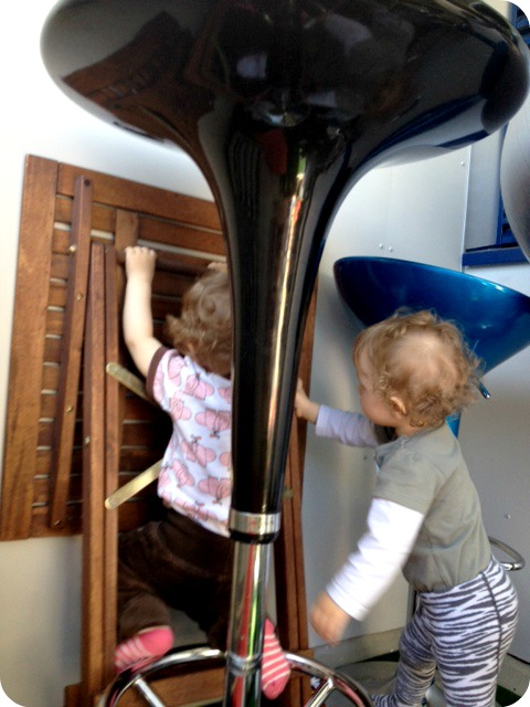 Idag är en sån där dag då jag bara sprungit runt och lyft ner, tröstat, lekt och passat på de små. De försöker klättra överallt. På väggarna, bokstavligen, hur jag än ställer det är arma bordet.