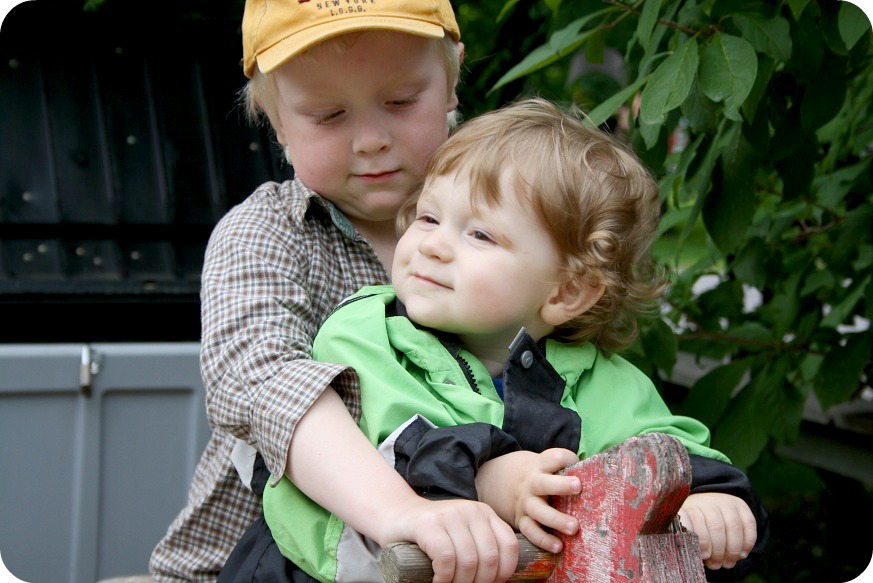 Ikväll var vi ute en stund efter regnet fick han ett myggbett i sidan av huvudet dessutom. Varför älskar alla kryp hans lilla huvud? =( Twinsen är glada i alla fall, det är bra.
