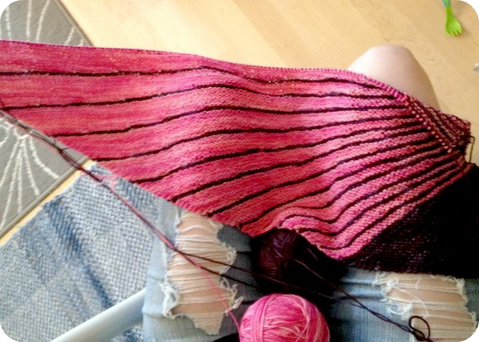 Efter en mycket lång och regnig dag, pustar jag bara ut, stickar klart en rosalila sjal och tackar vår skapare för att dagen är över.