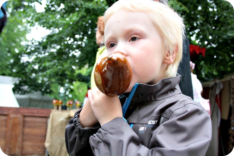 Vi hann i alla fall gå en stund på medeltida marknaden idag, innan regnet slog till med kraft.