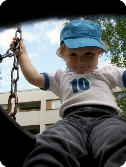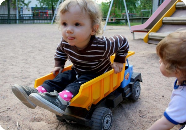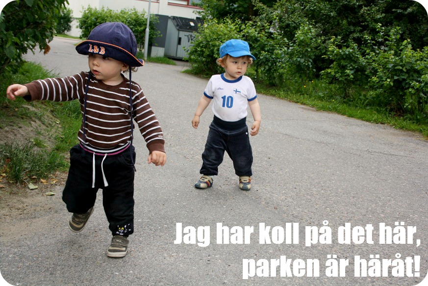 (det har blivit mer fart under fötterna sedan de började gå mer. De hittade själva vägen mellan ett par av lekparkerna idag. Hur kan man det som ettåring? Coolt i alla fall.)