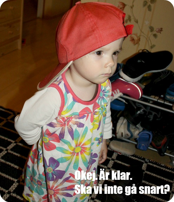 Innan vi åkte drog Milja på sig Williams mössa och tyckte att alla andra var så sega. Speciellt mamma som aldrig hittar sina skor, sin tröja eller byxor när vi precis ska gå! 😀