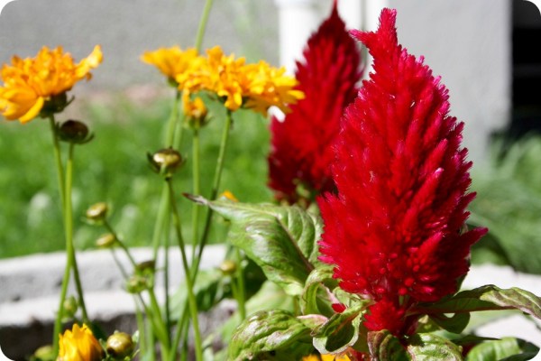Idag har vi byggt kojor, båtar, grävt i sand och gungat så sedvanligt och plåtat både kända och okända blomster. Den röda, toppiga blomman är okänd för mig, men den såg intressant ut. Det är svårt att fota rött så det blir rätt.