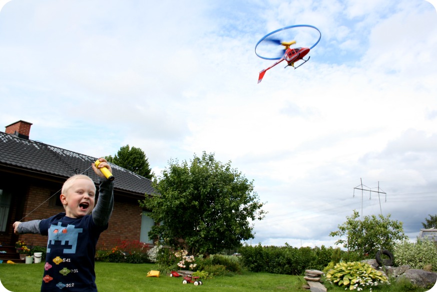 William och jag hade vansinnigt roligt med en helikopter. Så kul att den hamnade på både tak och i träd.
