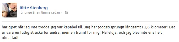 Jag tog mod till mig och vågade mig ut i skogen. Senast orkade jag bara jobba 700 meter och så kom väggen emot. Nu lydder jag de råd jag hade fått, att jobba så lugnt jag kan, så man kan prata ungefär och det drog ned hastigheten rejält. Däremot ledde det till att jag inte var kräkfärdig efter en kilometer, utan kom runt hela banan. Okej, jag gick två gånger i ett par branta uppförbackar (det är 33 meter i höjdskillnad på hela banan i skogen) för att Mika tipsade mig om det, för att spara vaderna när man är ovan.