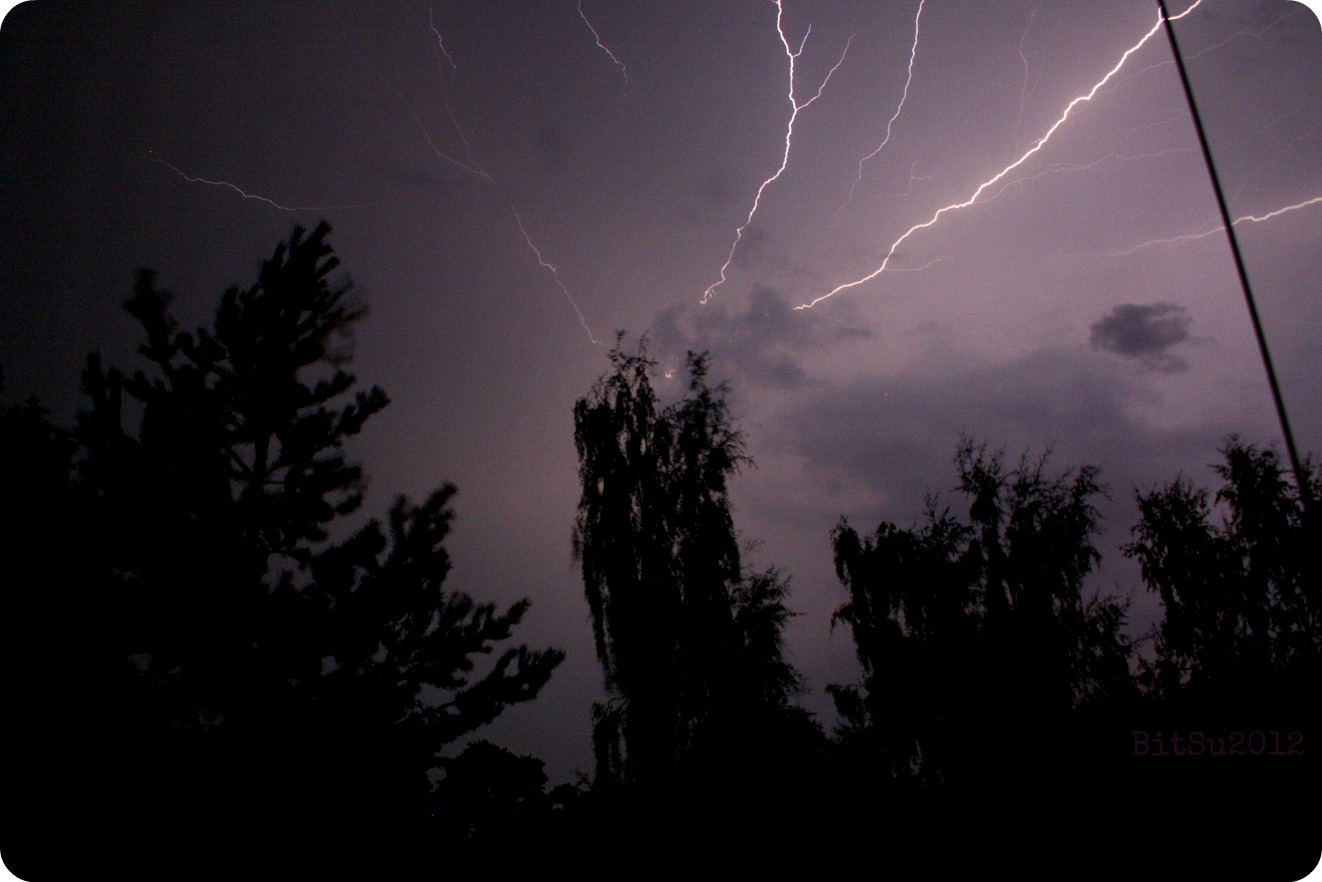 Jag har aldrig vatit med om maken till oväder. Åtminstone inte något som jag minns. Det haglar blixtar, men mullret hålls på avstånd, som dova, tunga steg. Himlen är mörk, men lyser upp av täta blixtar utan ljud, flera gånger i minuten. Jag väntar med min kamera på stativ. Manuellt fokus, 800 ISO, 0″8 sekunder. DÄR kom den. Igen. Blixten som delade himlen. När jag var liten skrämde min mormor alltid upp mig med att den kunde slå ner i mig.