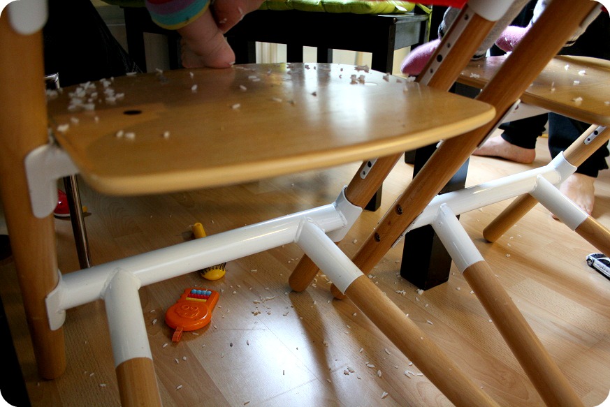 Vi låter twinsen äta själva och det har sina nackdelar. I det här fallet nerver. Man skulle kunna mata förstås, det gör vi med gröt fortfarande. Av förklarliga skäl.