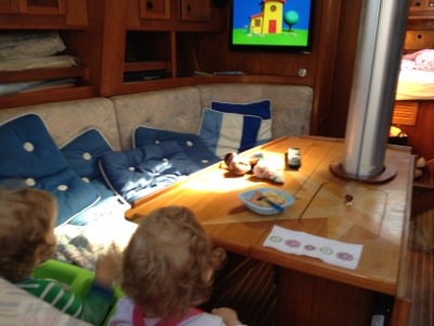 Duktiga fammo och faffa ger oss lite fritid från barnen också. Tack. ❤ Idag åkte vi för motor, pga hård motvind. Hoppas på samma vindar imorron,så vi kan segla i medvind. 😀