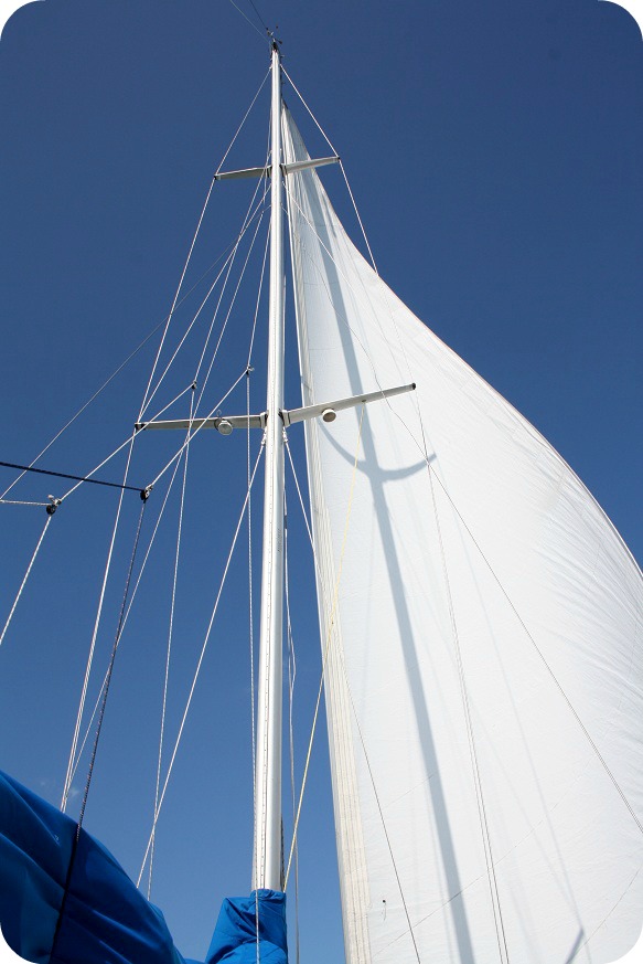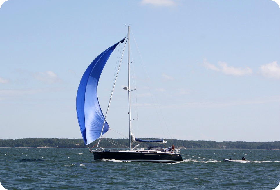 På hemvägen blev vi omkörda av en båt med en riktigt snygg spinnaker. Fast de fuskade ju, med så stort försegel! 😉