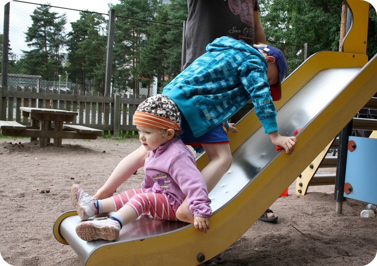Jo, jag fattar att de ville ha sin söndagsfrid, men vi bor ju alldeles intill, vi brukar träffa ett par bekanta på den där lekplatsen. Vi förstör inget, ungarna lekte snällt, men såklart är de inte tysta. Alla ska få plats, men det är svårt när man vill så olika saker.