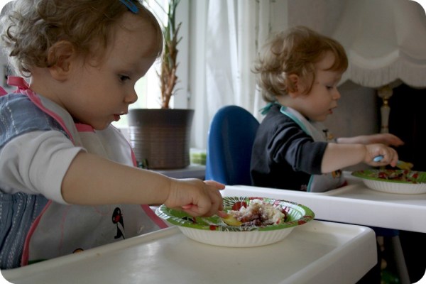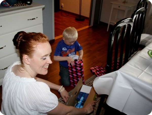 Det blev ett bra kalas! W och jag hade gjort tårtan, som höll ihop och smakade gott, fast jag fick grädda den två gånger. Hurra! Tvillingarna hade väntat hela dagen på bullar och kakor och tog igen den mat de inte orkat eller velat äta under dagen.
