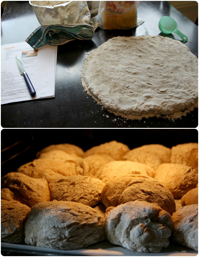 En dag med en massa skoj, är snart slut. Det är en sån där dag då jag får nåt matfnatt igen och Mika frågar om jag bor i köket. Jag bakar ju lite bara. Har testat ett nytt recept där man bara behöver jäsa bröddegen en gång. Egentligen ska man ha en varmluftsugn, så jag fick grädda lite längre, men det blev gott ändå. William kom in i köket när jag hade bröden i ugnen och jag frågade: