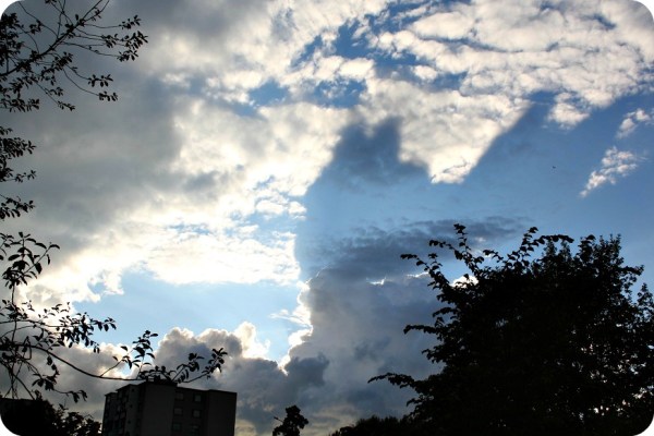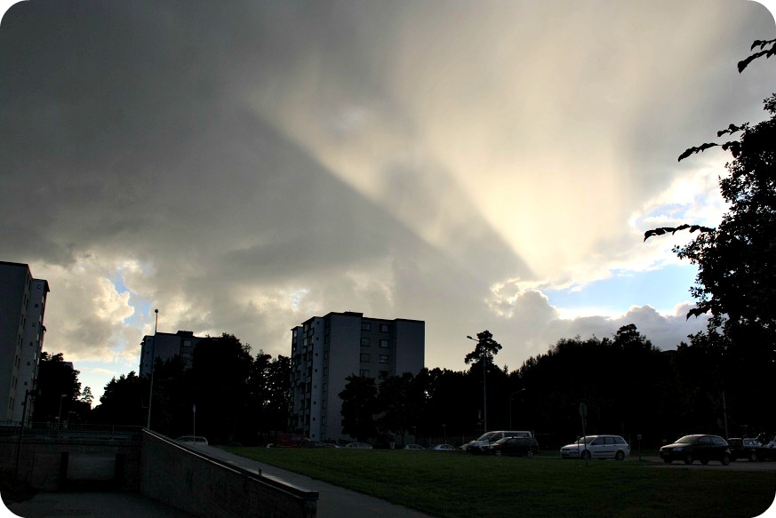 Vi hann vara ute i parken, trots att regnet hängde i luften på kvällen och det såg ut att bli blixtkrig. Det blev väldigt fina och grymt vackra skuggor på molnen.