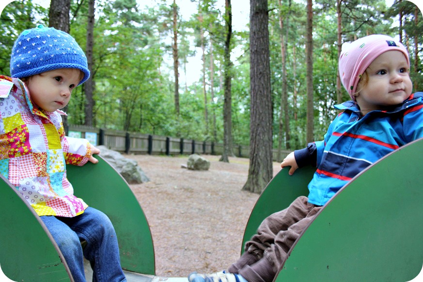 För det handlar ju om det här. Att lämna den sköna soffan och gå ut! Att göra saker, det man kan göra av en situation. Det går inte att göra allt med såhär små tvillingar, jag går inte och badar ensam med dem, inte än i alla fall. Jag låter inte dem springa iväg var som helst, ifall vi inte är två. Men i parkerna kan vi gå. Och som de älskar parkerna, och saft!