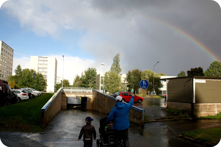 Och plötsligt är det borta. Lika snabbt som det kom. Kvar hänger ett par regnbågar och en bit blå himmel. Twinsen satt som två söta spillkråkor, som kikade ut ur sin holk. ^^