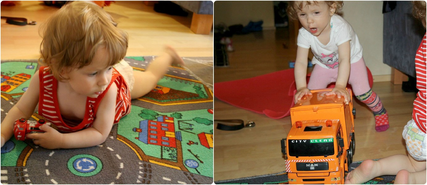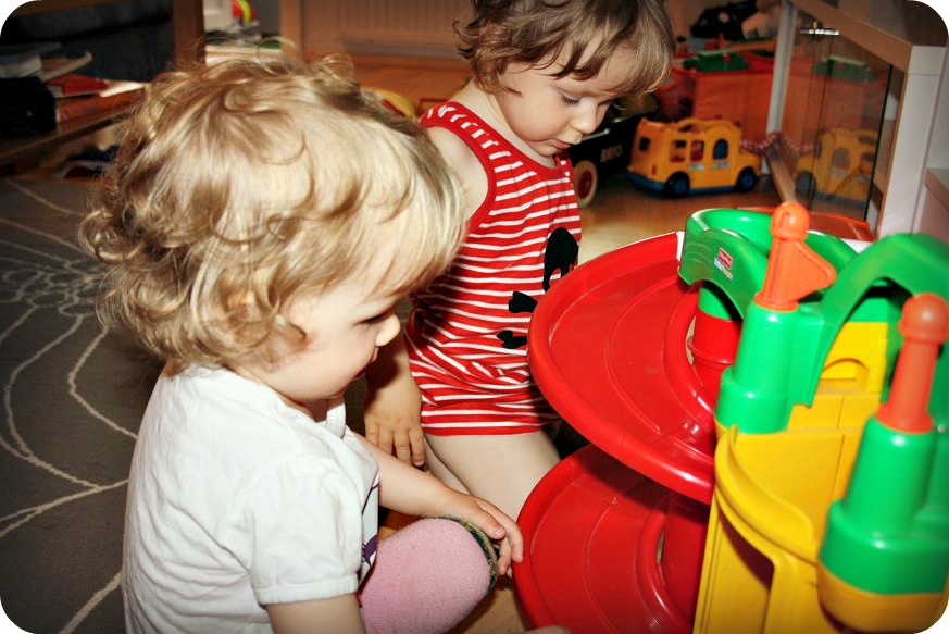 Så plötsligt leker de fint tillsammans. Tittut på balkongen, rullar bilar nerför kanan i garaget, samsar. William pysslar med sitt i eget rum och redan det är något jag inte vågade drömma om för ett år sedan. Älskade barn, ni är bara ett lån, ni driver mig och Mika till vansinne, men det går inte att sluta älska dem. För man älskar inte allt de gör, men ändå personen. Tvillingarna är nog ändå det bästa som nånsin hänt mig och oss. På sant.