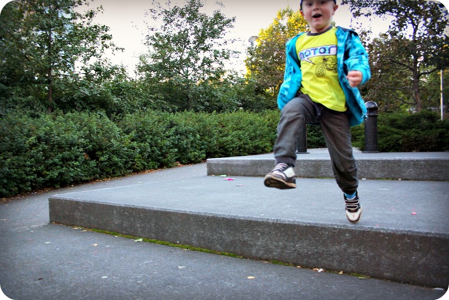 Vi har i alla fall varit ute en gång idag, även om det ibland känns som om man borde bo utomhus med det här brölgänget. WIlliam är jätterolig att ha med sig, speciellt när det är bara han och jag på stan, men att gå ut med tvillingarna som ensam vuxen är en utmaning. Den ena vill stanna i sandlådan eller utforska detaljer, medan den andra bara vill gå, gå och gå. William ville inte alls gå ut, men vägrade gå från lekplatserna vi stannade på. Huh huh! Det är en karusell som startar klockan 06 på morgonen och slutar lite efter 20 på kvällen.