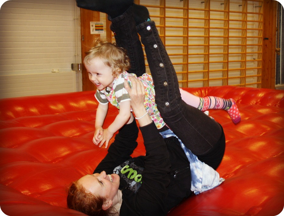 Är det inte fantastiskt att Åbo öppnar sina jumppasalar för barnen! Jag hade så sett fram emot Liikunnna ihmemaa, J var där med Andreas förra helgen och de hade så roligt. Men igår var A snorig så det blev inget. Nå, vi får gå nästa söndag istället! A ordnade en egen hinderbana här hemma i stället…
