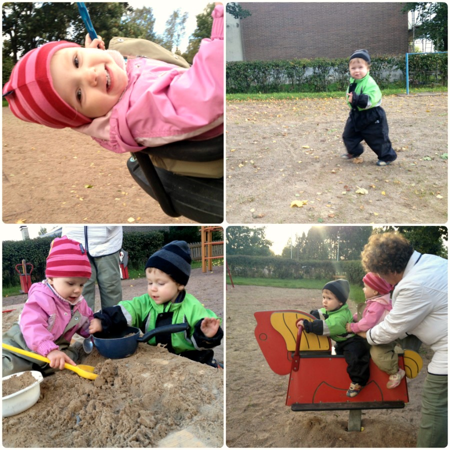 Alltså pust för den här dagisrulliansen! Ibland undrar man vad som tar mest tid – att ha barnen hemma eller springa fram och tillbaka. Mika är uppenbart mycket bättre på att dra iväg med alla tre, vi brukar turas om, eftersom bara en kan ha bilen under dagen. När jag ska åka iväg är det antingen nån som har gått iväg med en eller flera skor, nån som har bajsat, nån annan som inte vill klä på sig, en tredje som brölar efter en napp och så undrar jag om jag alls har kammat håret sedan igår eller om jag är svart under ögonen av sminket. Nåja, än så länge är det inte så panik för min del, men när jag börjar jobba blir det lite värre och då får jag gå upp tidigare.