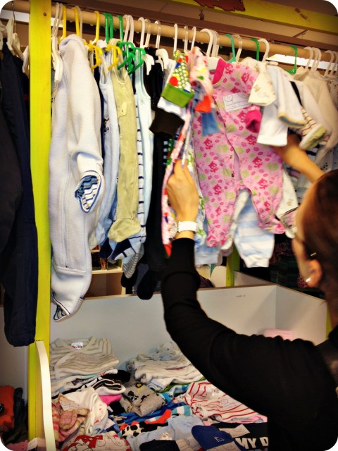 Vi fortsatte vårt loppis-race med en massa kläder och prislappar. Först högg det till lite i bröstet. Man står där med alla kläder och minnen av pyttesmå händer. Det är nästan så doften av ny bebis finns kvar i vissa plagg. Men vad ska man göra med en massa små kläder, när det hela tiden kommer fler plagg? Vi hann inte ens prissätta klart innan flera av plaggen gick åt. Sen kändes det roligt, roligt att veta att de får glädja nån annan bebis och dess mamma eller pappa! För egentligen är det ju för föräldrarnas skull man klär sin bebis, eller sin egen. Hur som helst känns det skönt att inte kläderna tar upp en massa plats här hemma. Och så har jag konstaterat att jag inte nånsin bli nån bra försäljare, om jag själv ska sätta priser. Jag är nog för snäll för det!