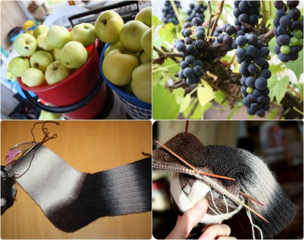 Idag är jag tacksam över de inlagda gurkorna, brödet, rotsaker och sånt, vi fått av musteri P. Jag vet att hon läser, så vi passar på att tacka så hemskt mycket för allt du gör för oss och säg till J att vi saknar honom också massor! Vi måste ses snart! 🙂 Sockstickning har det blivit också, det är föga förvånande, men alltid lika roligt! (garn: Zauberball, Schokocreme)