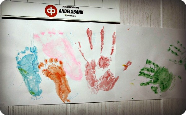 William och jag pysslade idag, medan bebblorna sov. Jag tejpade ihop papper, William ritade vägar, jag limmade fast torkade löv och sen gjorde vi träd och djur. Sen spårade det ur lite, eftersom Isaac vaknade och jag började måla hans fot. Det gillade han inte alls! Antagligen för att det kittlades för mycket, men sen fick jag ner alla ungarnas fotavtryck på samma papper, samt min och Ws hand. Milja signerade tavlan och poff, så hade vi ett mästerverk.