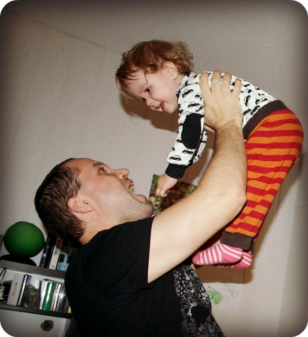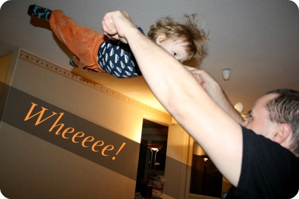 Busa och flyga med pappa! Det är tur att killar är starkare än tjejer, det behövs ibland.