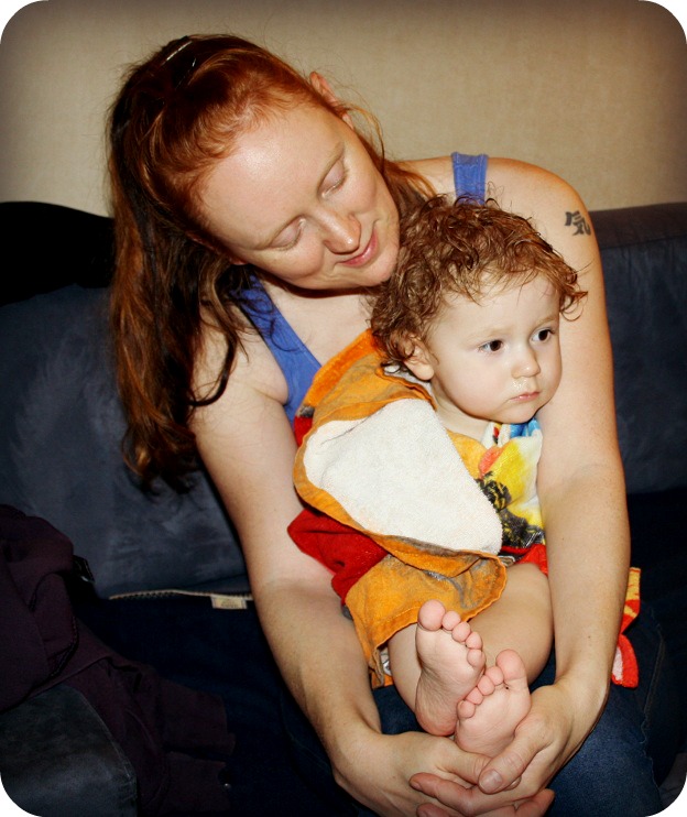 Små, mjuka fötter och en varm Isaac i famnen efter badet.